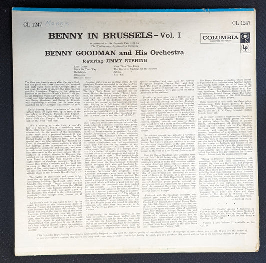 BENNY GOODMAN Benny In Brussels Volume 1 LP Vinyl Record Columbia CL 1247 (VG Vinyl, VG Sleeve)