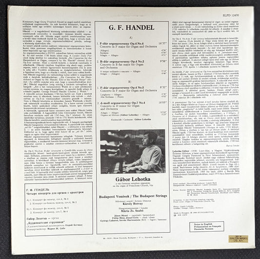 HANDEL Organ Concertos LP Vinyl Record GABOR LEHOTKA The Budapest Strings (VG+ Vinyl, VG+ Sleeve)