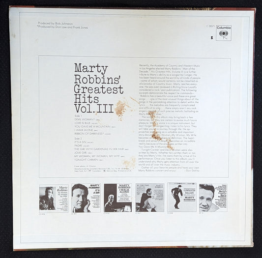 MARTY ROBBINS Greatest Hits Vol III LP Vinyl Record Columbia C 30571 (VG+ Vinyl, VG Sleeve)