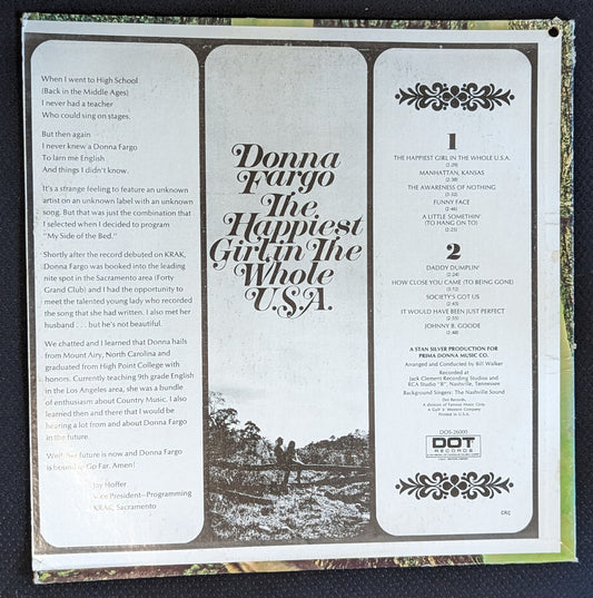 DONNA FARGO The Happiest Girl in The Whole USA LP Vinyl Record ABC DOT DOS 26000 (VG+ Vinyl, G+ Sleeve)