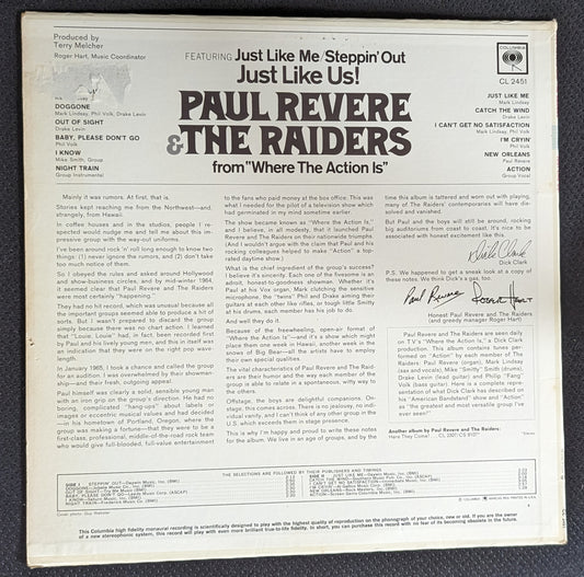 PAUL REVERE & THE RAIDERS Just Like Us LP Vinyl Record 1966 Columbia CL 2451 (VG Vinyl, VG Sleeve)