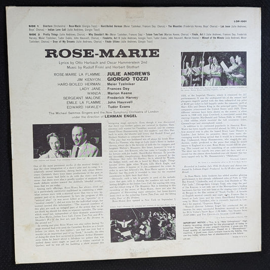 JULIE ANDREWS GIORGIO TOZZI Rose Marie Vinyl Record 1959 RCA Victor LOP-1001 (VG Vinyl, VG Sleeve)