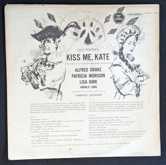 COLE PORTER Kiss Me Kate Musical LP Vinyl Record Capitol STAO 1267 Alfred Drake (VG Vinyl, G+ Sleeve)
