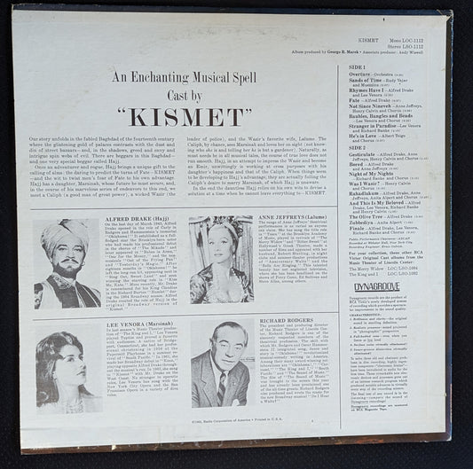 Kismet Original Cast Music Theater Of Lincoln Center LP RCA Victor LSO-1112 (VG Vinyl, G+ Sleeve)