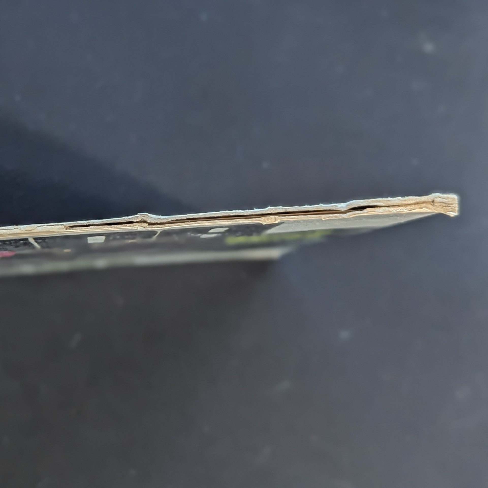 The record plays well with occasionally noticeable surface noise. Visually, there are scuffs or light marks. Price stickers on front cover and side 1 label. The sleeve is partially split at the top seam. There is ring wear and corner wear.