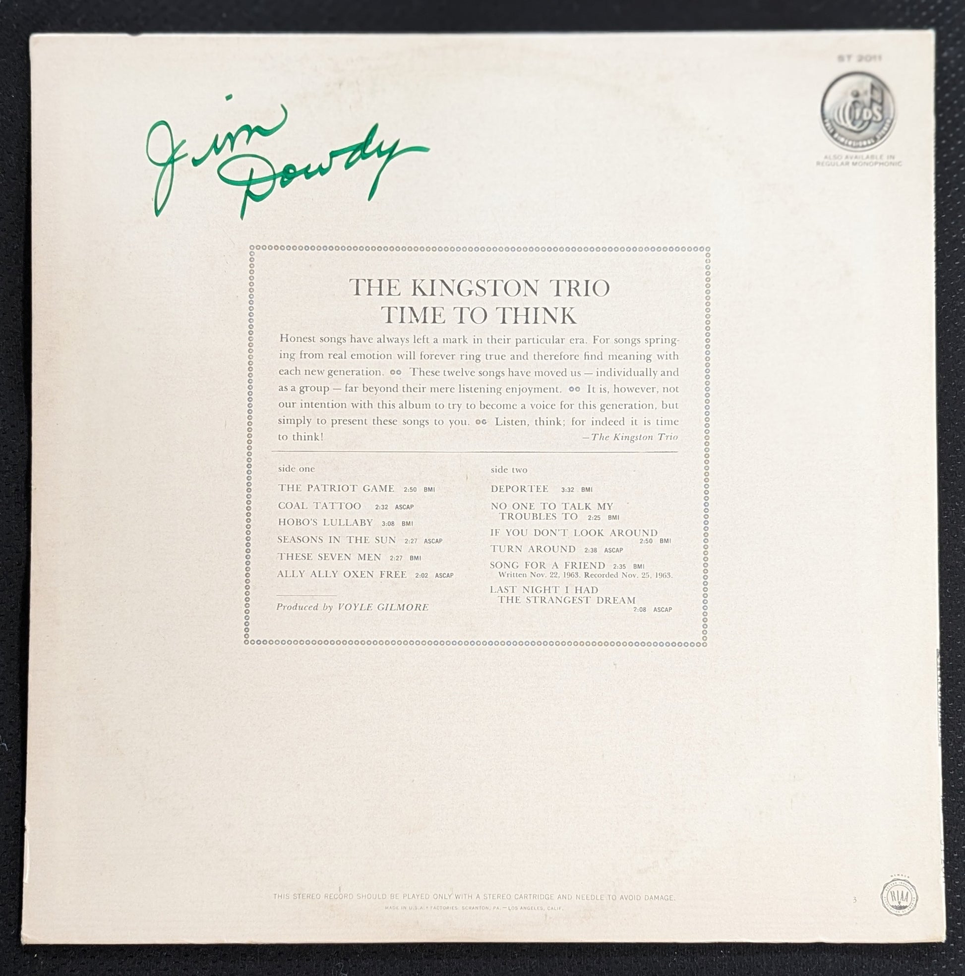 THE KINGSTON TRIO Time To Think LP Vinyl Record 1964 Capitol ST 2011 Folk (VG Vinyl, VG Sleeve)