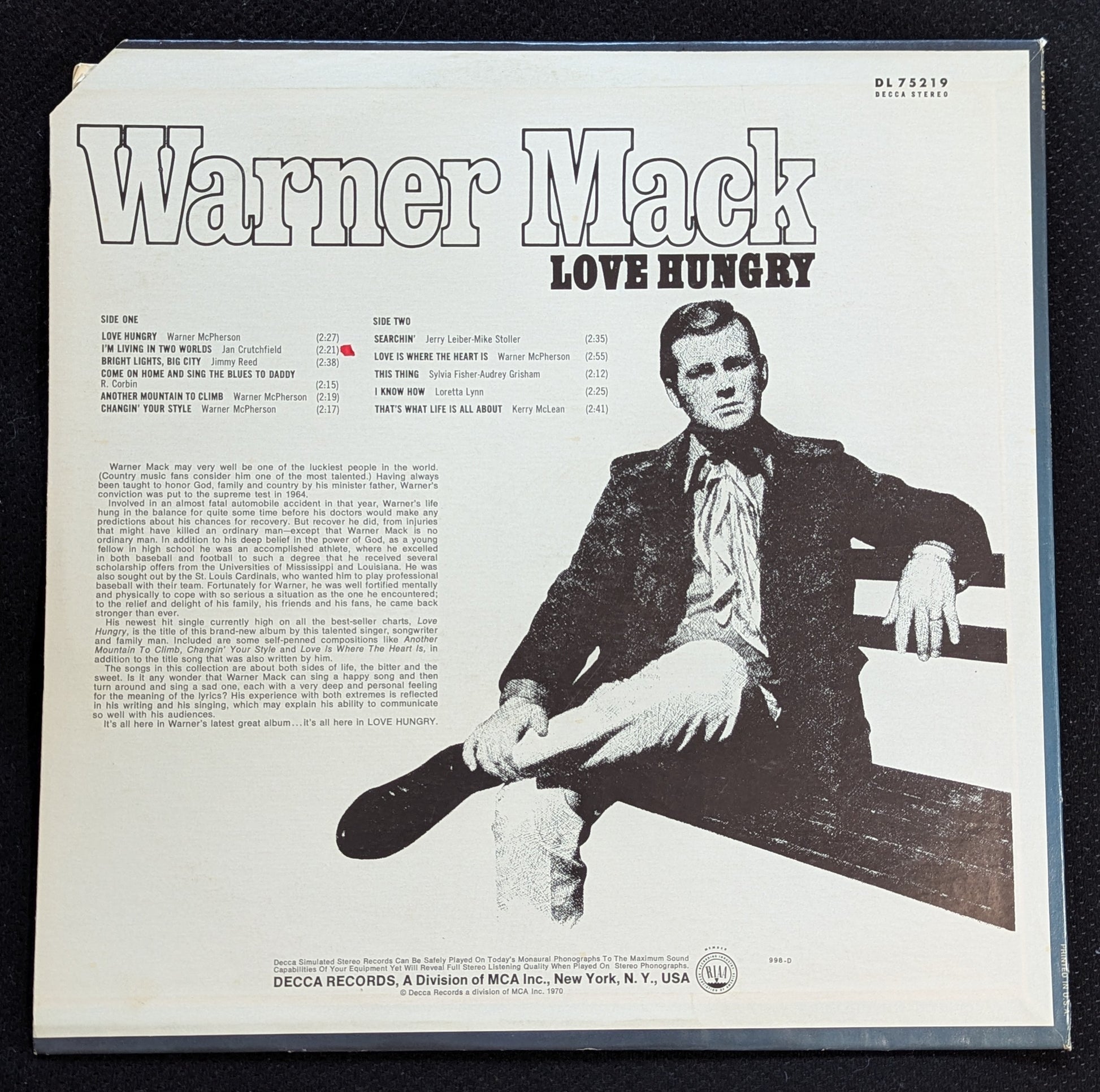 WARNER MACK Love Hungry LP Vinyl Record 1970 Decca DL 75219 (VG Vinyl, VG Sleeve)